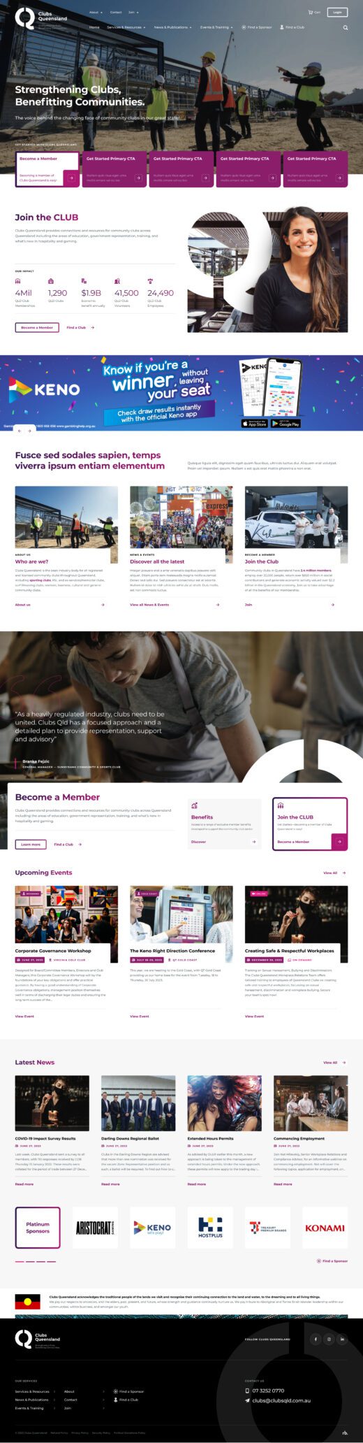 Clubs QLD is the voice behind the changing face of community clubs in the great state of Queensland. We were engaged to deliver a series of sports club website design prototypes for their internal developers to incorporate.