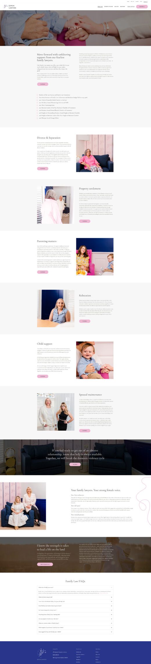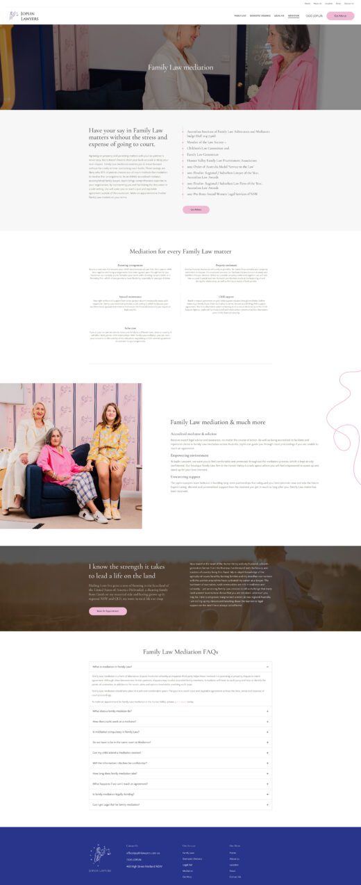 Adorned with bespoke graphics and calming pastels, its modern design is a reflection of the firm’s beautiful and welcoming space in Maitland. Plus, the site features a stress-free user experience that guides users with a seamless flow and crystal-clear navigation. On each page, in-depth content enlightens users with service overviews, FAQs, related articles and opportunities to get to know Joplin better. Users are also encouraged to seek support through prominent CTAs, helping to boost online enquiries for the firm’s Family Law and Domestic Violence Law services.