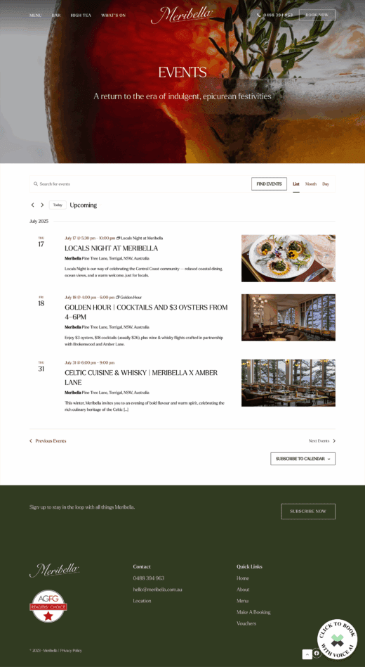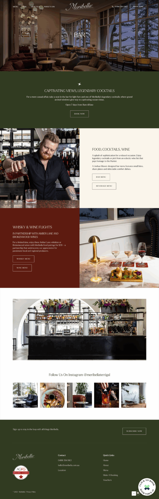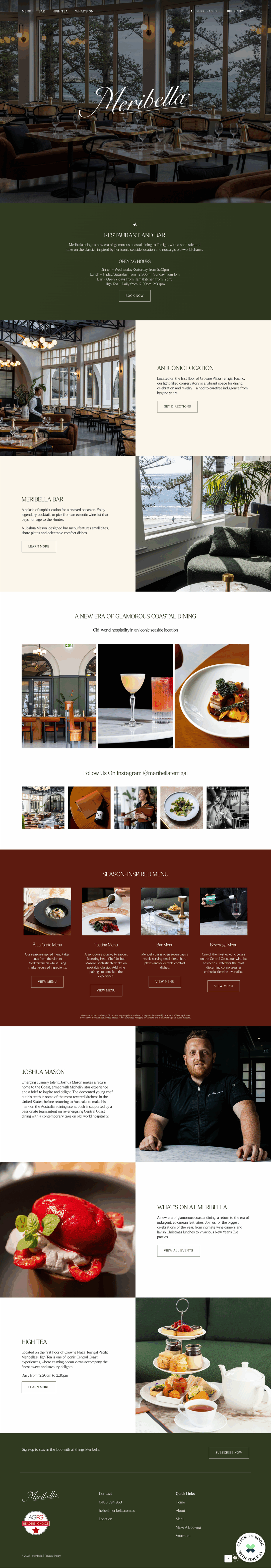 Set on the first floor of the Crowne Plaza Terrigal Pacific, Meribella offers glamorous dining with coastal views. To stand out online, this new restaurant needed a smooth site that showcased its menu and location while making reservations a breeze.