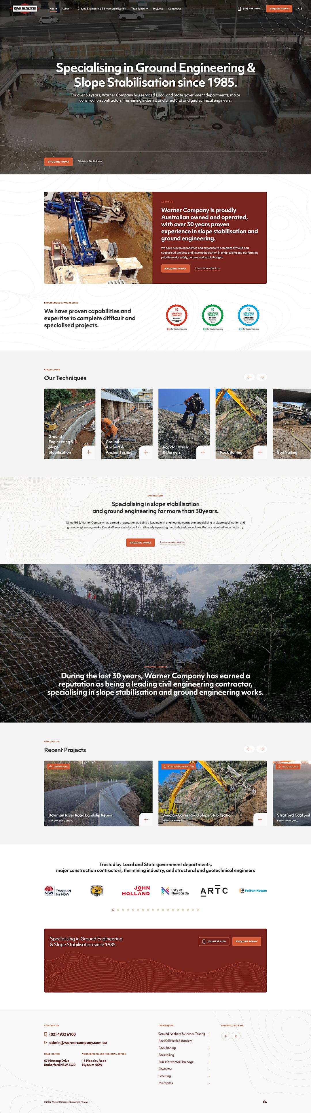 Warner Company is a leading civil engineering contractor with over 30 years experience in slope stabilisation and ground engineering works. But with a decade-old website that was outdated and outranked on Google for key search terms, it was time for a digital overhaul.